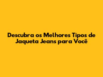 Tipos de Jaqueta Jeans: Encontre o Modelo Ideal para Você