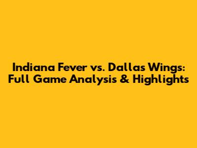 Indiana Fever Vs. Dallas Wings: Full Game Analysis & Highlights