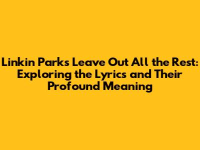 Hey everyone! Today, we're diving deep into one of Linkin Park's most emotionally resonant tracks: "Leave Out All the Rest." This song, from their album Minutes to Midnight, isn't just a collection of words and music; it's a heartfelt message, a goodbye, and a testament to the band's ability to connect with listeners on a deeply personal level. We'll break down the lyrics and explore what makes this song so special. So, grab your headphones, get comfy, and let's explore the meaning behind "Leave Out All the Rest," with its lirik terjemahan (translated lyrics) and a look at the cultural impact.