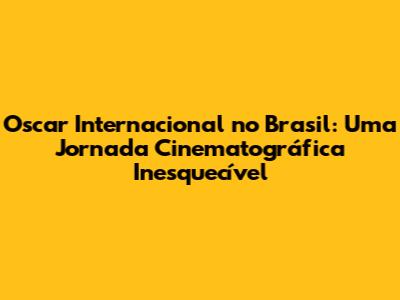 O Oscar Internacional no Brasil é muito mais do que uma premiação; é uma celebração do cinema e da cultura brasileira. É uma oportunidade de conhecer e apreciar filmes de diferentes países, de celebrar o talento dos artistas e de se orgulhar da nossa produção cinematográfica.