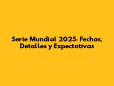 Serie Mundial 2025: Fechas, Detalles Y Expectativas