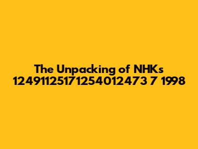 Hey guys! Today, we're diving deep into something a bit obscure, but hey, that's where the real gems are sometimes found, right? We're talking about NHK's 12491125171254012473 7 1998. Now, I know what you're thinking – that's a mouthful, and what on earth does it even mean? Well, stick around because we're going to break it all down. We'll explore what this specific identifier might represent, its potential significance within the vast archives of NHK (Nippon Hōsō Kyōkai, Japan's public broadcaster), and why understanding these cataloging systems can be super important for researchers, historians, or even just curious cats like us. Think of it as a digital treasure hunt, and this string of numbers and letters is our map. We'll try to uncover the context, maybe a specific program, a broadcast date, or a technical specification that this code points to. It’s a journey into the nitty-gritty of media archiving, and honestly, it can be surprisingly fascinating once you start peeling back the layers. We’ll be looking at how organizations like NHK meticulously catalog their vast collections to preserve broadcast history for future generations. So grab your magnifying glass and let's get started on unraveling this intriguing NHK code!