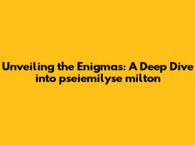 Unveiling The Enigmas: A Deep Dive Into Pseiemilyse Milton